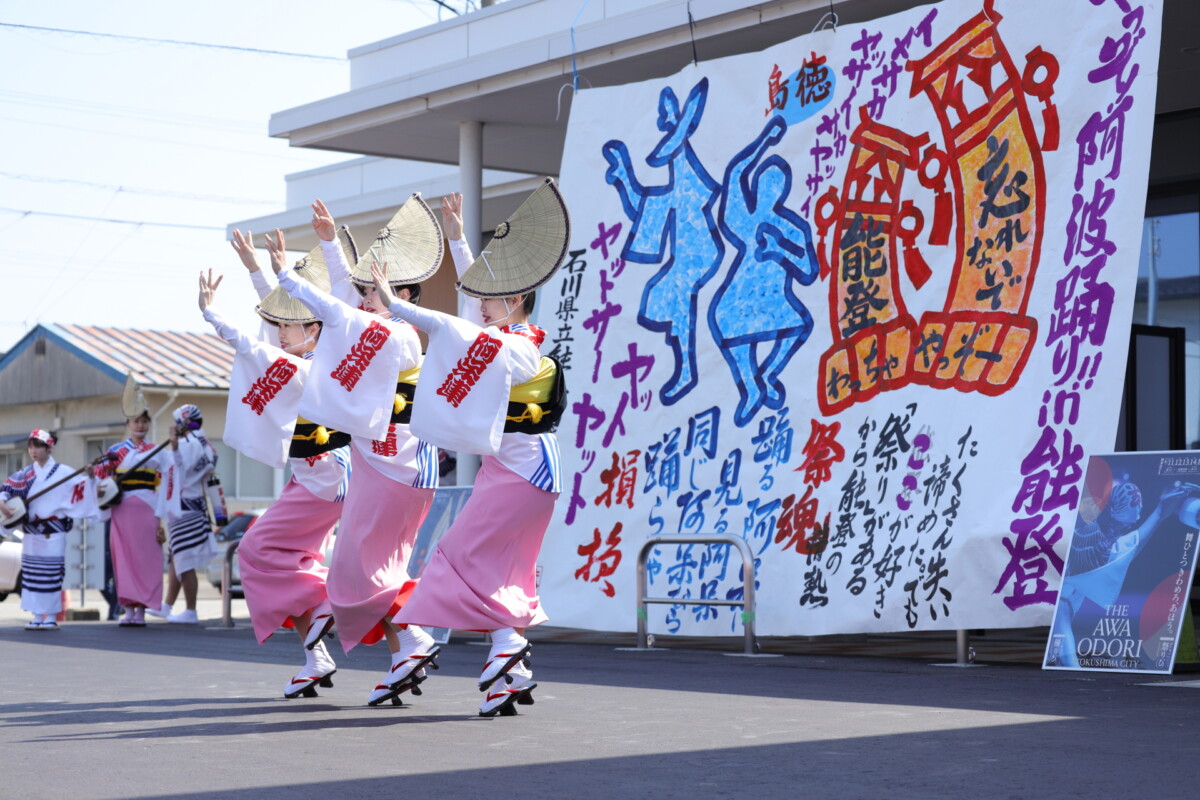 徳島を代表する阿呆連(あほうれん)にたまたま友達がいたり、連長さんが妹のサッカーコーチだったり、阿呆連メンバーに能登町出身の方がいたりと色んなご縁があり、このプロジェクトに阿呆連が参加してくださいました。