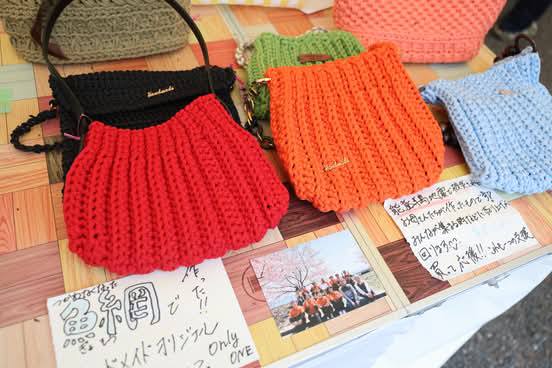 また、能登のお母さんたちが作ったパラコードのストラップ、漁網を直すために使う紐やTシャツの素材で作ったバックをお預かりし販売しました。