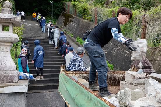 また茨城県牛久からは高校生40名が参加しました。地元能登校、また大学生も合流し、能登町真脇地区で活動しました。