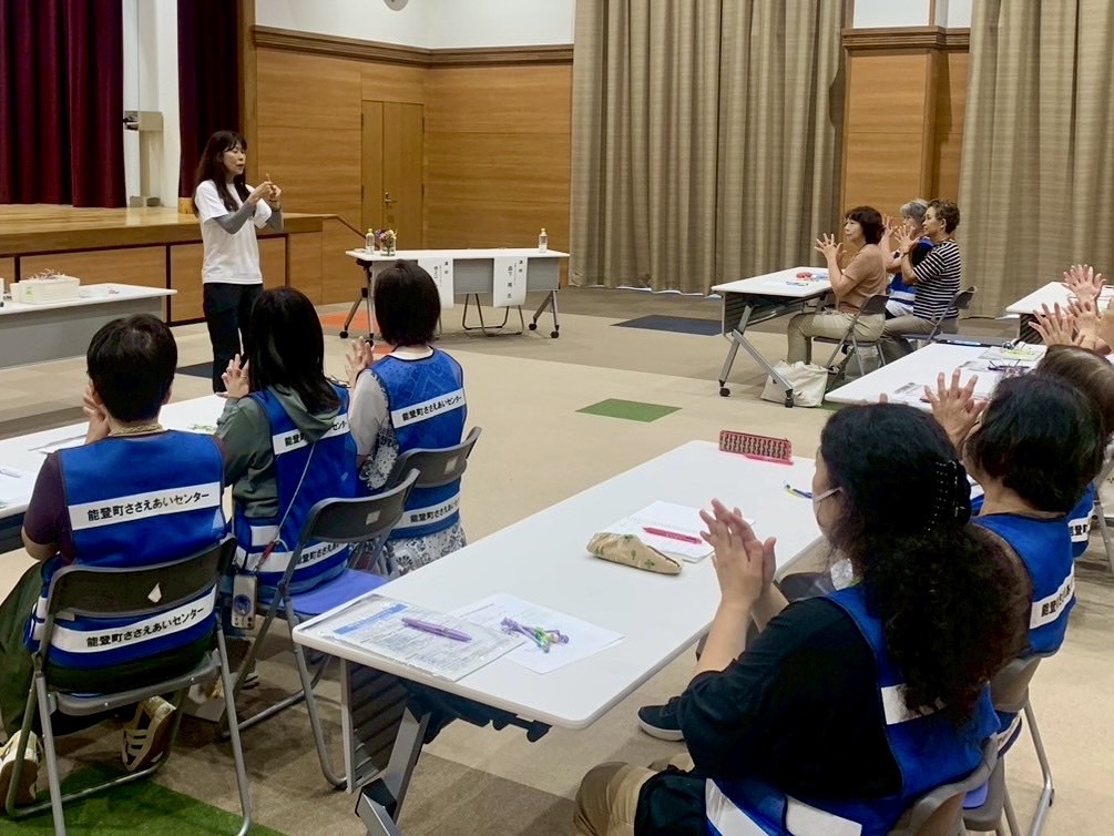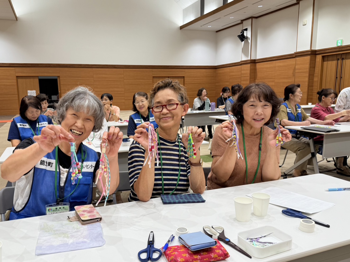 能登町で活動されている支え合いセンター生活支援相談員の研修会にも招かれ、地元美容師のまれちゃんと一緒にパラコードストラップ作りとサロン運営の実演を行いました。