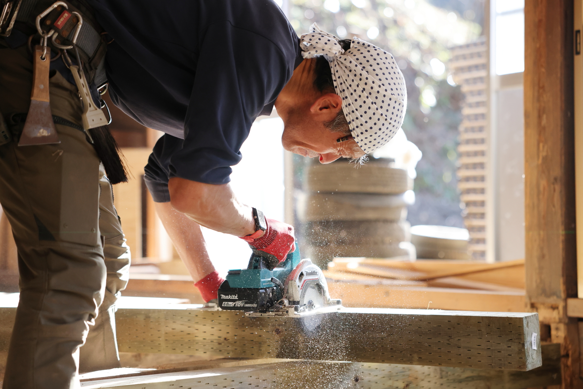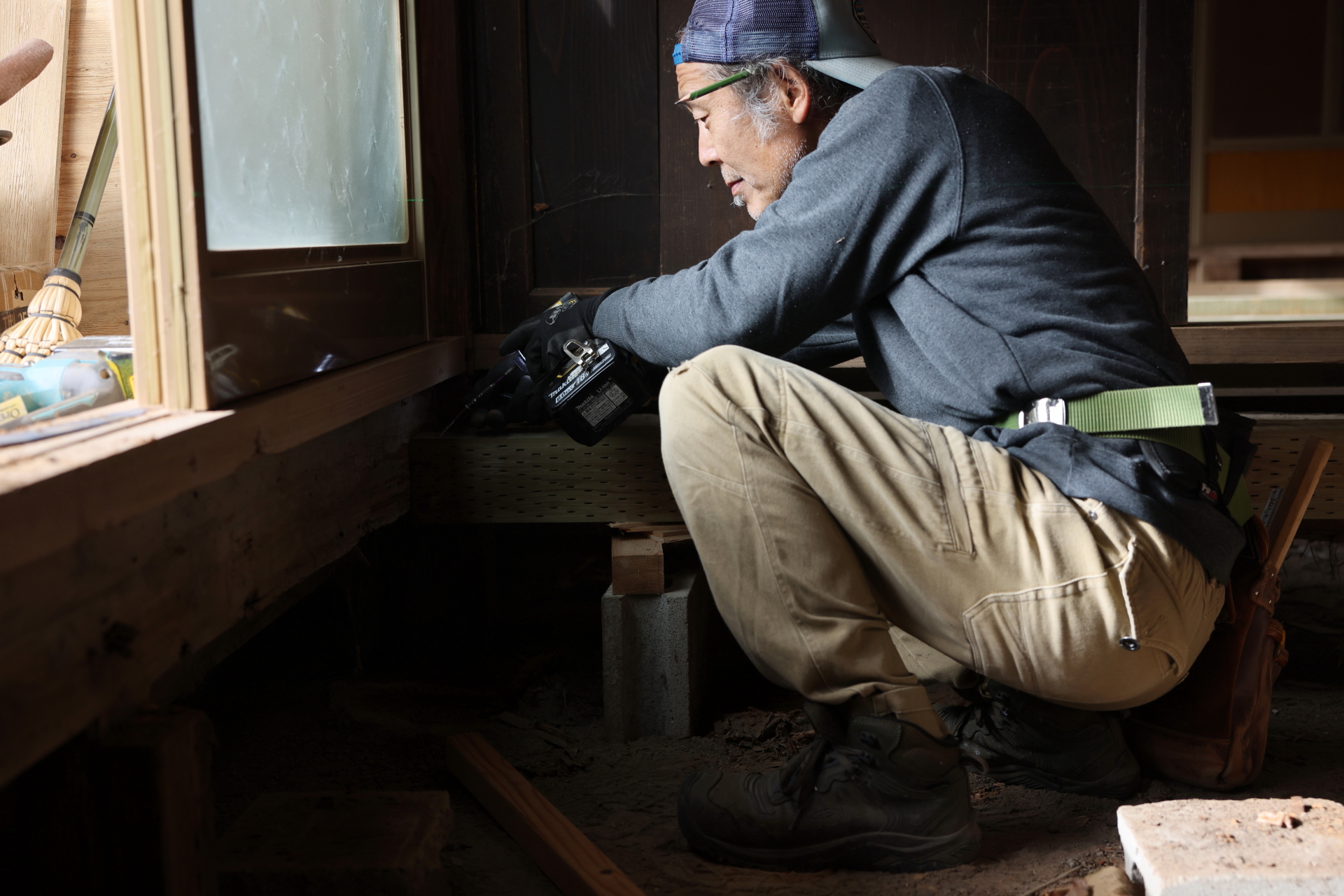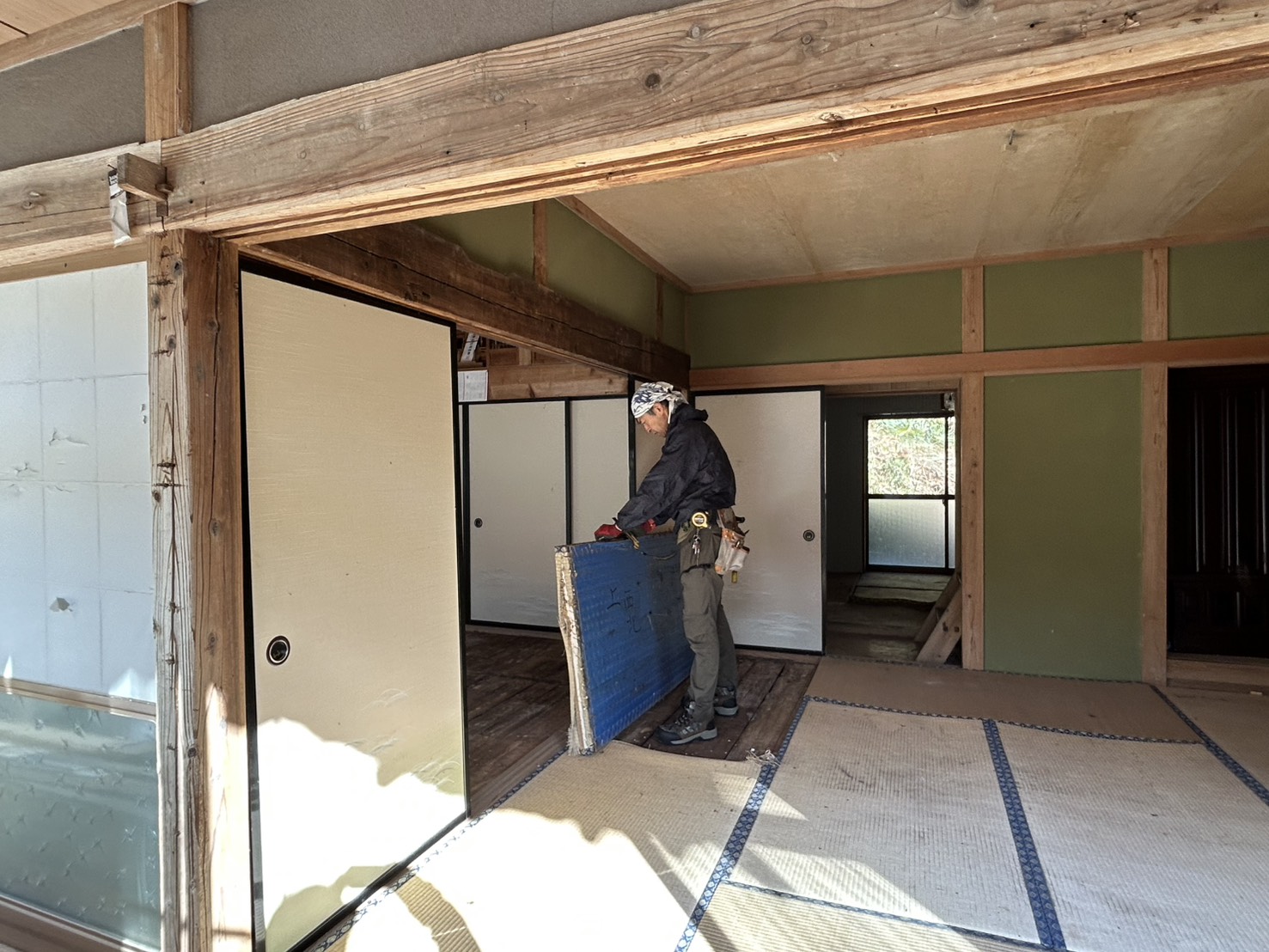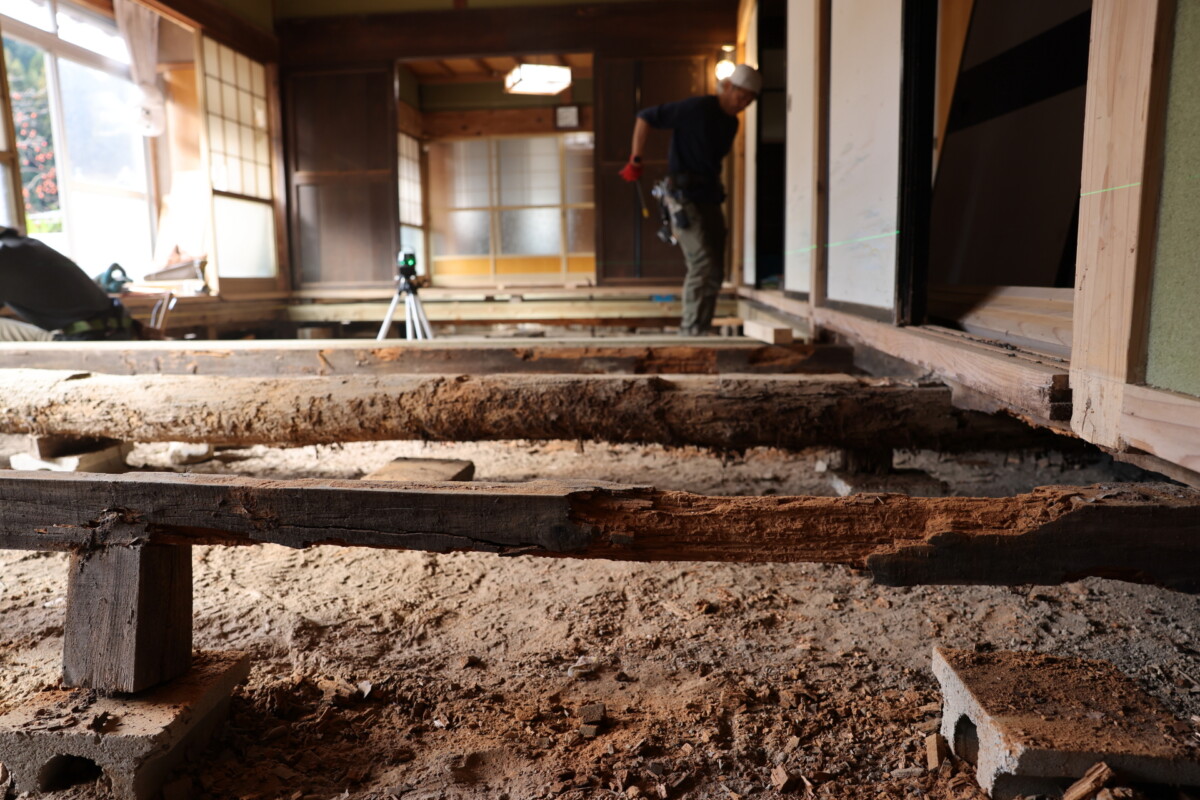 大工チームにより、古民家部分の24畳の床の修復が始まりました。
