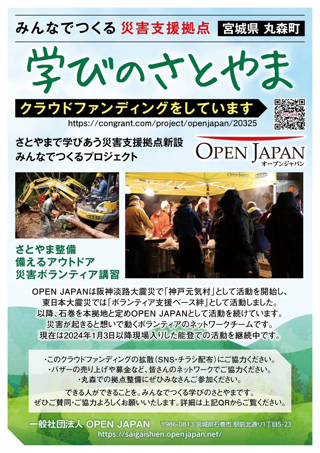 また宮城県丸森町小斎地区での「学びのさとやま」ベース整備も本格的に始動し、私たち初めてのクラウドファンディングにも挑戦中です。