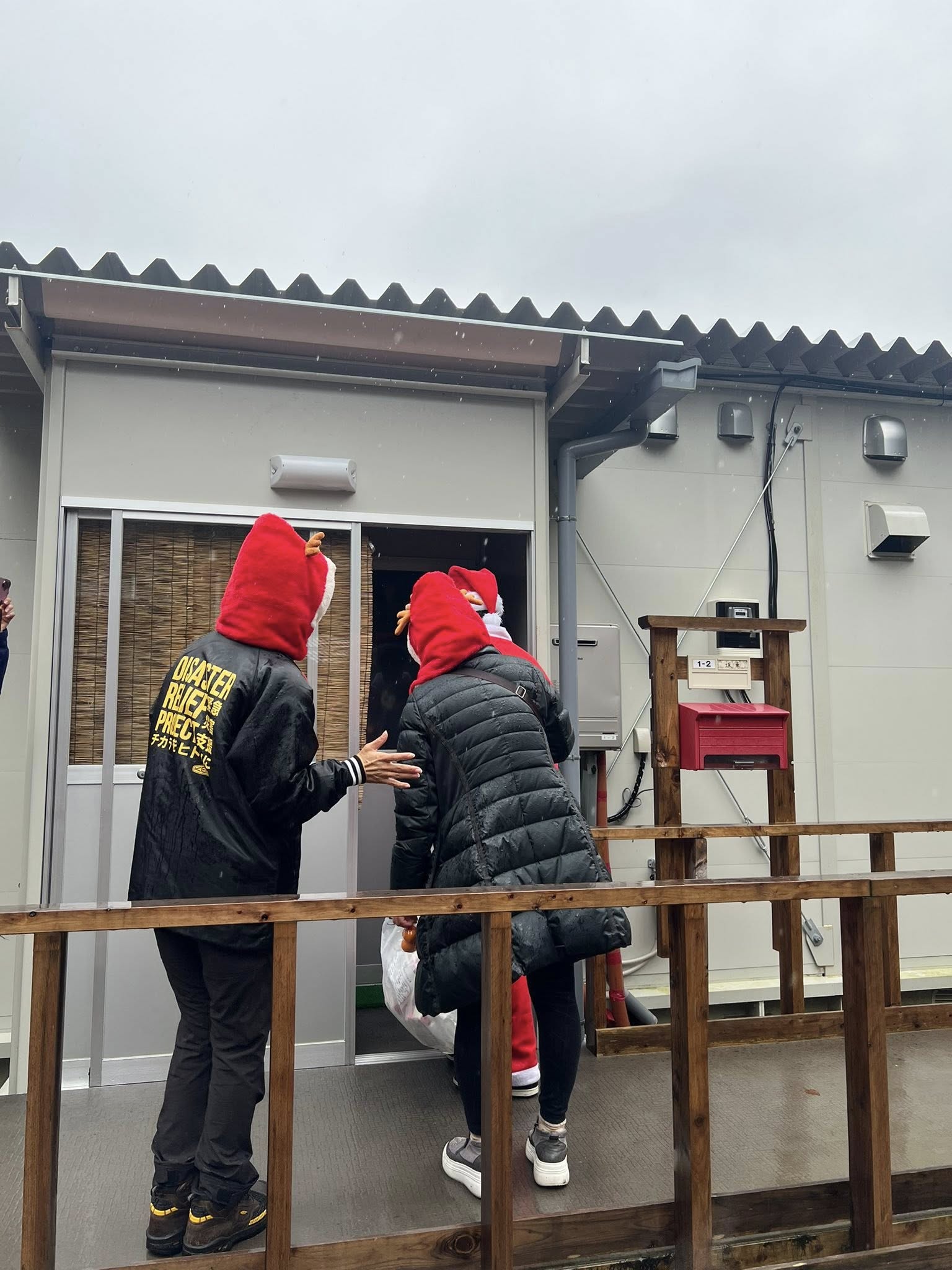 能登ではクリスマスに合わせサンタプロジェクトを行いました。地元の能登高校生に「徳島大学防災サークルてくと」の2名も参加、たくさんのみなさんにプレゼントをお届けに伺いました。